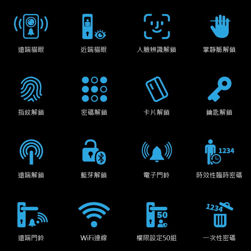 - 掌靜脈和人臉和指紋和卡片和密碼皆可單增和單刪